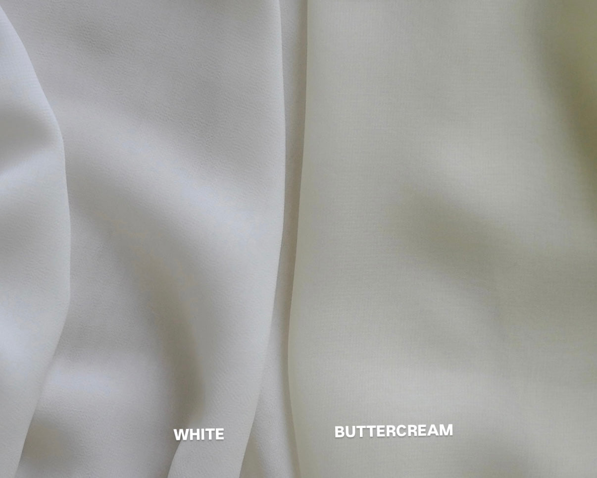 Buttercream brings a warmer energy, with a subtle yellow undertone that pairs beautifully with creamier dresses.