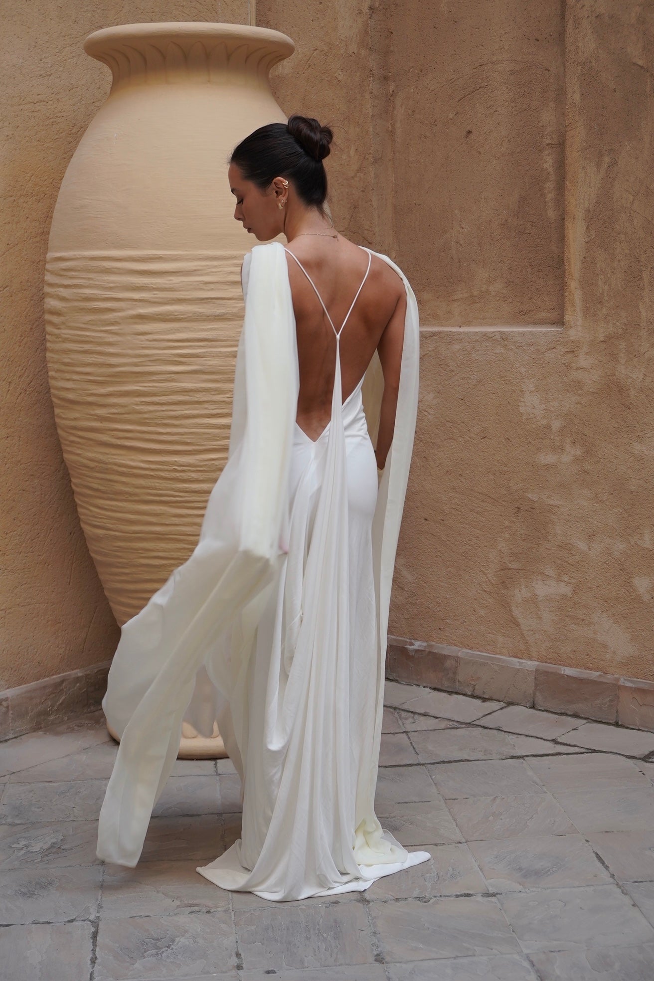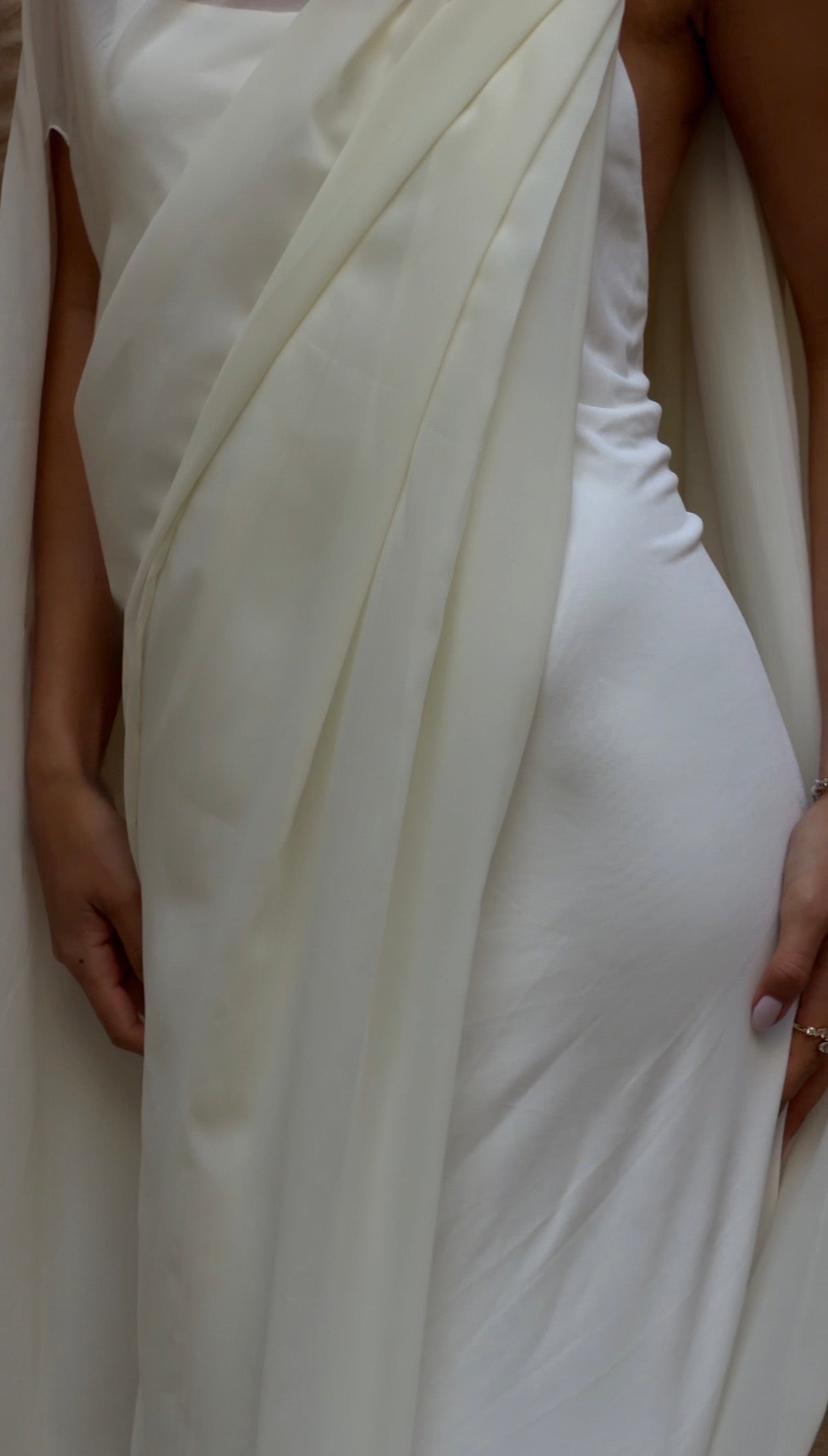 This cape is a versatile and elegant piece, carefully handmade. Perfect for both weddings and special events. Its soft, flowing design gently drapes over your chest and shoulders, adding a touch of grace and modesty to any gown. The ideal accessory for anyone looking to elevate their look with a refined, timeless touch.
