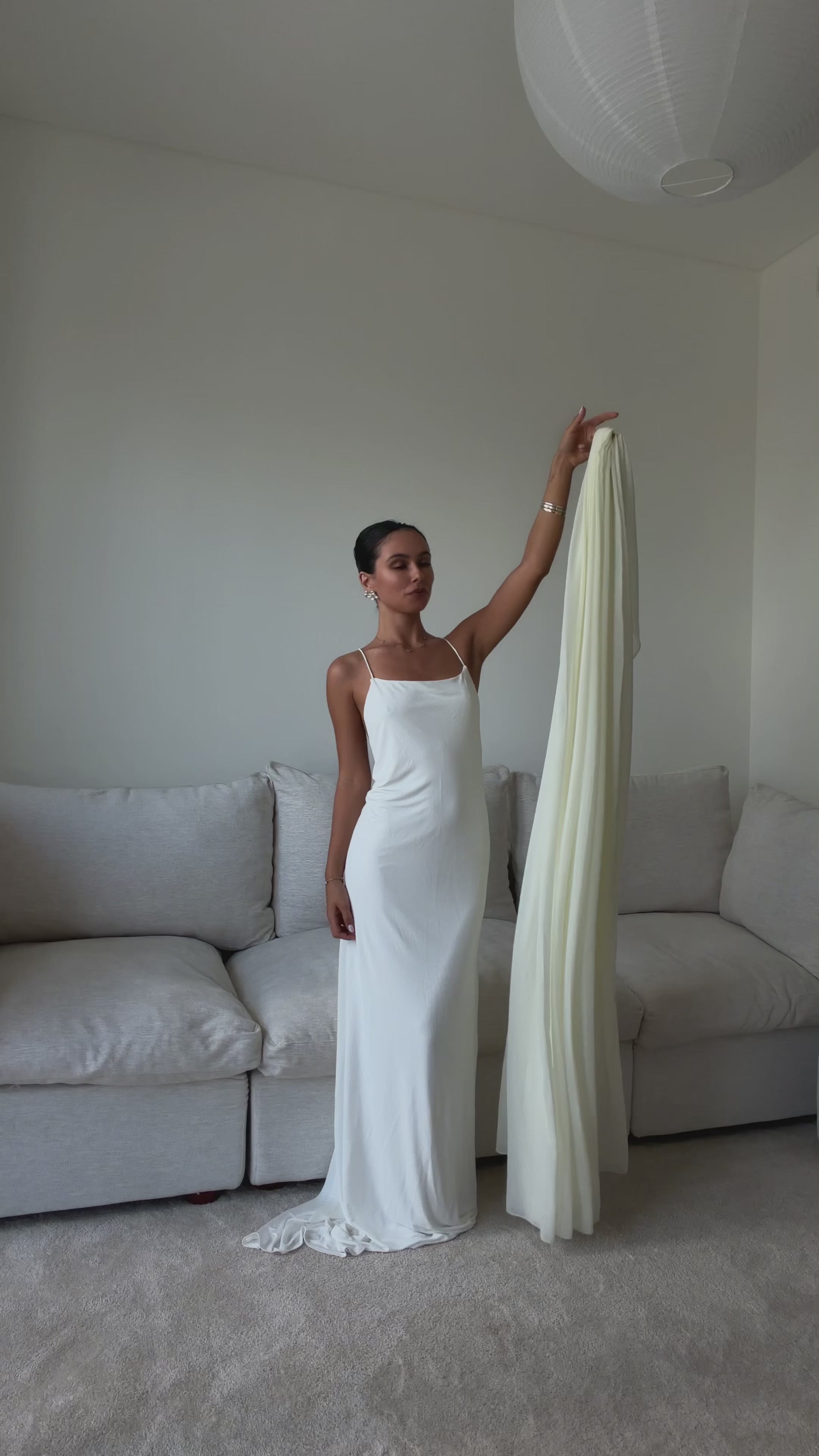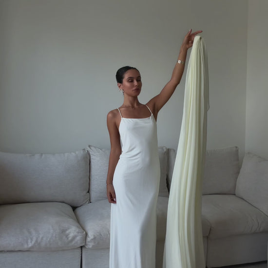 Our White is a soft, near-white designed to complement cool and neutral-toned gowns.