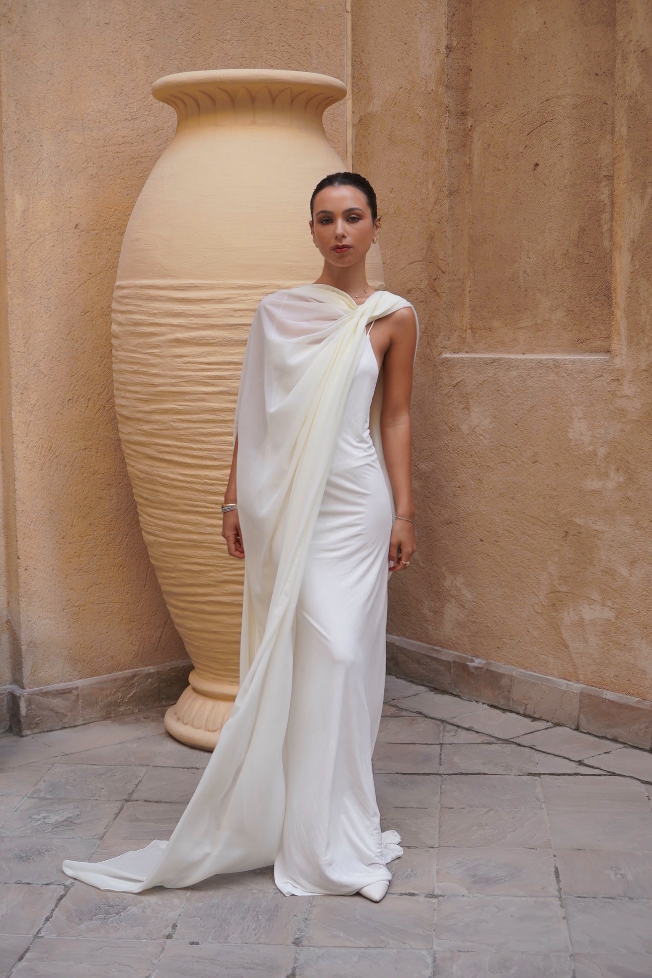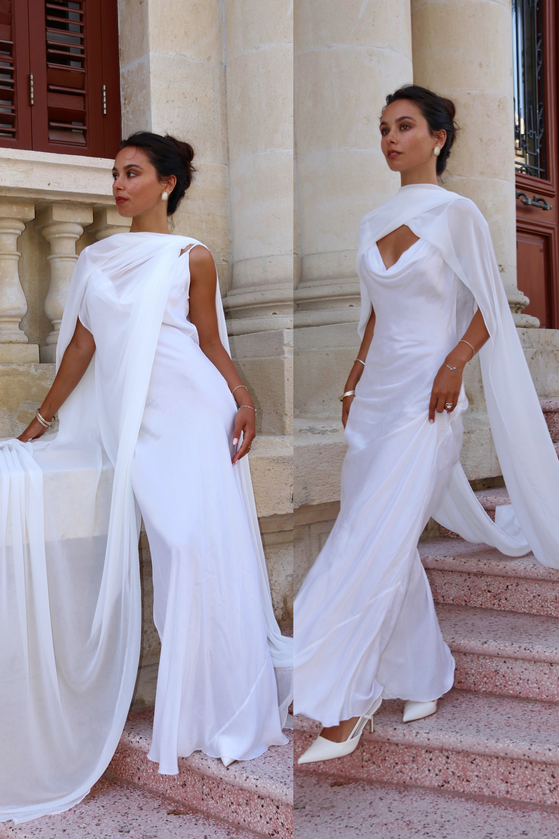 Elevate every bridal moment with The Signature Set, a refined pairing of our best-selling Medusa Cape and the classic sheer Farfalla Scarf.